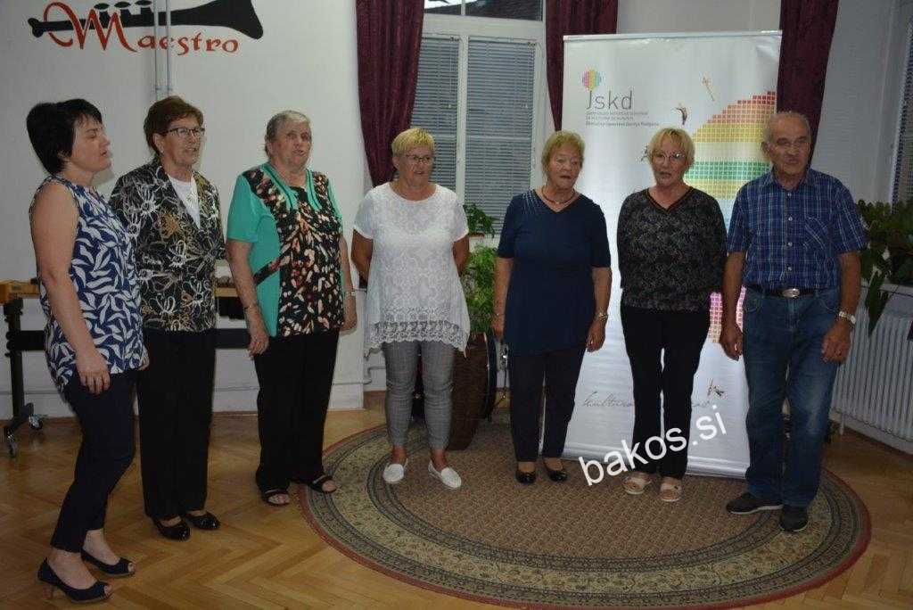 Kot prve so se nam tokrat predstavile Ljudske pevke iz Apač, ki uspešno prepevajo že več kot 20 let. Nastopajo na raznih prireditvah v občini in izven nje. Redno se udeležujejo revij poustvarjalcev ljudskega izročila in so večkrat izbrane tudi na regijsko srečanje. Vsako leto pripravijo samostojni koncert z gosti, ki bo letos 30. septembra v Kulturnem domu Apače. Vesele in ponosne so, da sta se jim pridružili dve novi, mlajši pevki. Pravijo, da jih druži prijateljstvo in veselje do petja lepe slovenske ljudske pesmi. Pevska skupina DU »Grozdek« Janžev Vrh se je ustanovila pred petimi leti, v letu 2017 z namenom ohranjanja in prepevanja slovenske ljudske pesmi ter popestritve posameznih aktivnosti društva. Sodelujejo na reviji pevskih zborov Pomurske pokrajinske zveze društev upokojencev, reviji poustvarjalcev ljudskega izročila in na posameznih aktivnostih PGD Janežev Vrh. Pravijo, da nimajo nobenih »tekmovalnih« ambicij, pojejo pa z veseljem za svojo dušo.