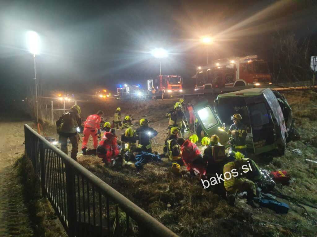 Danes, ob 0.19 uri zjutraj, je na avtocesti A1 Mar4ibor – Ljubljana, na relaciji Tepanje–Dramlje, v občini Slovenske Konjice vozilo zapeljalo s ceste. Ena oseba je umrla, poškodovanih pa je 10 oseb. Gasilci PGD Slovenske Konjice in PGD Zreče so zavarovali kraj, nudili prvo pomoč poškodovanim, nudili pomoč reševalcem NMP in odklopili akumulator. Reševalci NMP so oskrbeli poškodovane osebe in jih odpeljali v SB Celje in UKC Maribor.