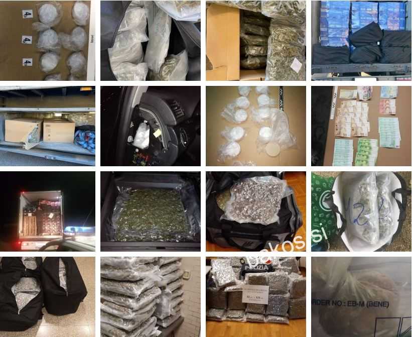 V okviru mednarodne preiskave, ki jo je usmerjalo Okrožno državno tožilstvo v Ljubljani, so kriminalisti v sodelovanju z varnostnimi organi Italije, Španije, Francije, Avstrije, Srbije in Bosne in Hercegovine potrdili, da so člani mednarodne hudodelske združbe želeli na območje Slovenije pripeljati skoraj 600 kilogramov prepovedane droge konoplja in nekaj kilogramov heroina. Navedena prepovedana droga jim je bila zasežena na ozemlju več držav. Z zaseženo drogo bi člani združbe zaslužili okoli 1,6 milijona evrov. Kriminalisti so tudi ugotovili, da so osumljeni na isti način iz Bosne in Hercegovine v Slovenijo pripeljali vsaj tri avtomatske puške in naboje.