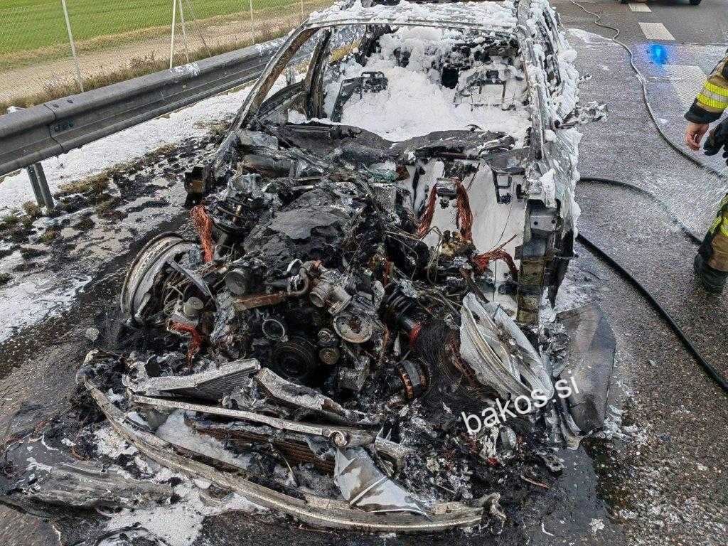 Ob 13.45 so bili polivisti obveščeni, da na avtocesti, pri počivališču Dolinsko gori osebni avtomobil. Ob prihodu policistov in gasilcev na kraj, je osebni avtomobil pogorel že v celoti.