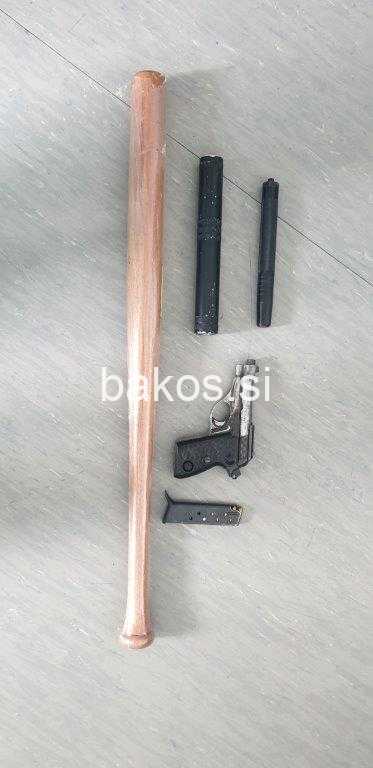 „Policisti so 27. maja 2020, po odredbi preiskovalnega sodnika Okrožnega sodišča v Mariboru, opravili hišno preiskavo na osumljenčevem domu v Mariboru. Med preiskavo so našli in mu zasegli pištolo s pripadajočim nabojnikom in naboji ter kovinskim dušilcem zvoka, kar je posedoval nezakonito. Prav tako so našli in zasegli kovinsko teleskopsko palico, ki je po Zakonu o orožju opredeljena oziroma kategorizirana kot hladno orožje, katerega posest ni dovoljena in leseni kij (baseball palico). Pri preiskavi so zasegli tudi zavitek ALU folije z praškasto grudasto snovjo bele barve in zavitek ALU folije s posušenimi rastlinskimi delci, za katere sumijo, da so prepovedana droga“, je sporočil Miran Šadl, tiskovni predstavnik PU Maribor.