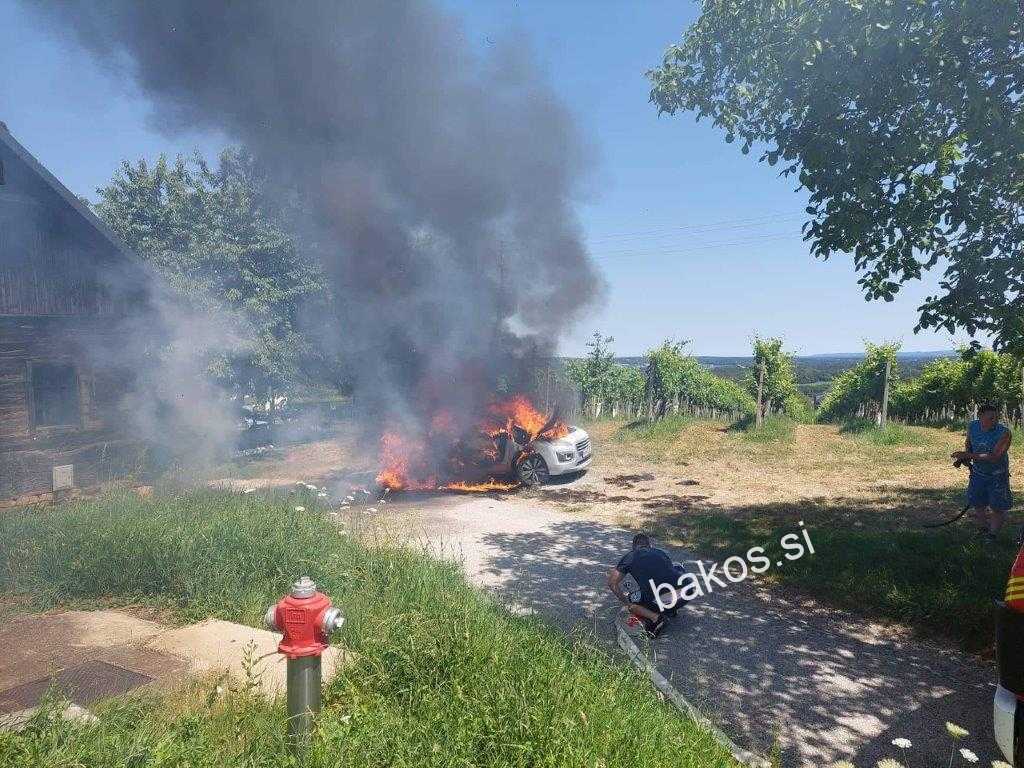 Avto je zgorel, poškodovane tri osebe (Foto: PDG Spodnji Ivanjci in PGD Gornja Radgona)