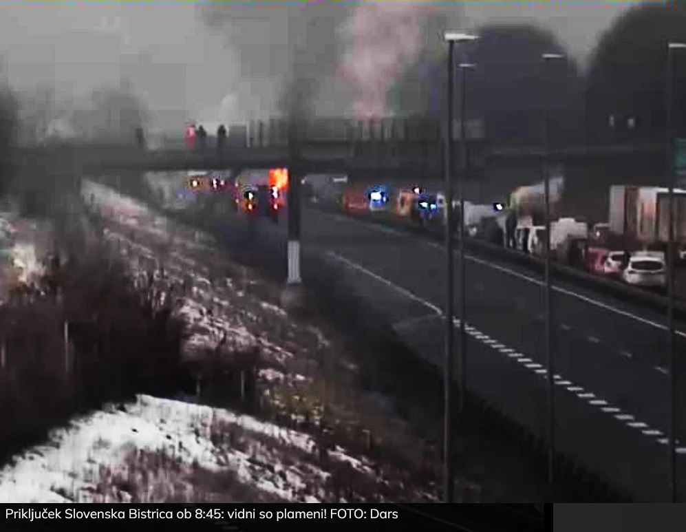 Danes malo po osmi uri, se je na Štajerski avtocesti med priključkoma Slovenske Konjice in Slovenska Bistrica jug, pripetila huda prometna nesreča, nato je še prišlo do obsežnega požara. Promet je zaprt v obe smeri. Vozniki osebnih vozil naj se na regionalno cesto preusmerijo proti Celju v Slovenski Bistrici, proti Mariboru pa v Slovenskih Konjicah, svetujejo na Prometno-informacijskem centru. Nastajajo zastoji tako na avtocesti kot na regionalnih cestah. “V zastoju ustvarite reševalni pas,” pozivajo. Prometno-informacijski center vsem tovornim vozilom, ki potujejo med Mariborom in Ljubljano, priporoča pot prek Hrvaške.