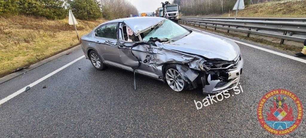 Danes, ob 9.28 uri sta na uvozu na avtocesto v Grabonošu, v smeri Maribora, občina Sv. Jurij ob Ščavnici, trčila osebno in tovorno vozilo. Pravzaprav je osebni avtomobil trčil v zadnji del tovornjaka hrvaških registrskih označb. K sreči pa poškodovanih udeležencev ni bilo, zato pa je nastala znatna materialna škoda.