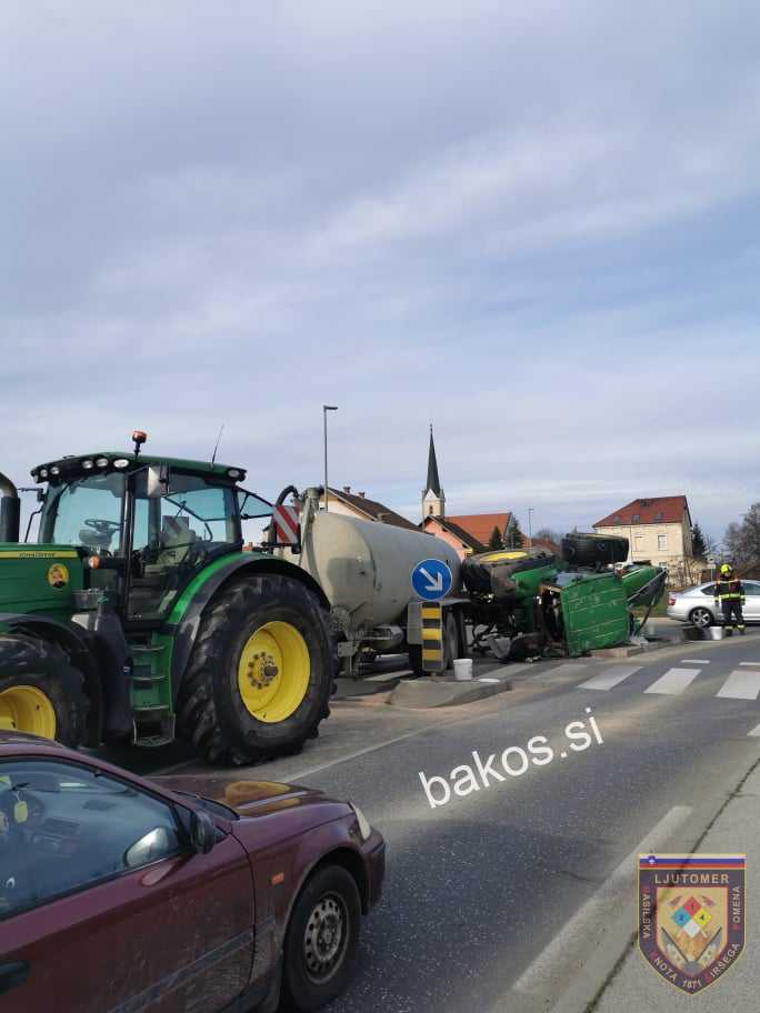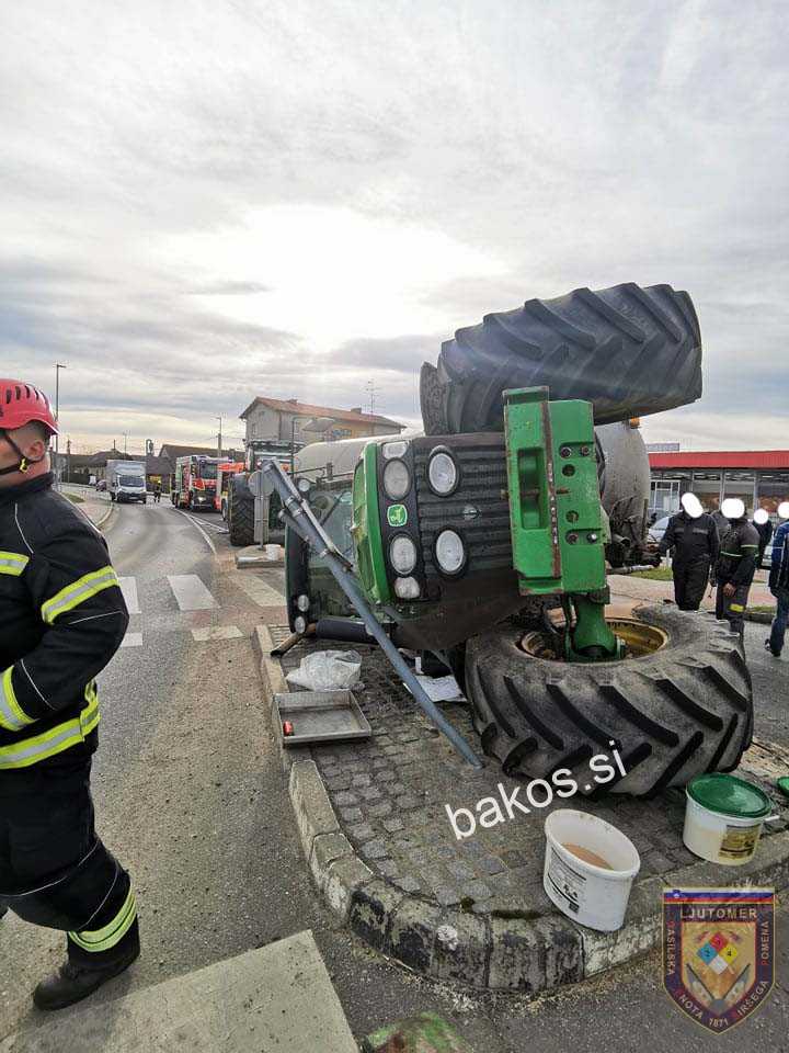 Danes, ob 12.47 uri se je v naselju Boreci, v občini Križevci, v krožišču prevrnil traktor. Gasilci PGD Ljutomer so zavarovali kraj nesreče, nevtralizirali po vozišču iztekle tekočine in nudili pomoč policiji pri usmerjenju prometa. Po znanih podatkih v nesreči ni bilo poškodovanih oseb, je pa traktor dodobra poškodovan, kar pomeni, da tudi materialna škoda ni majhna.