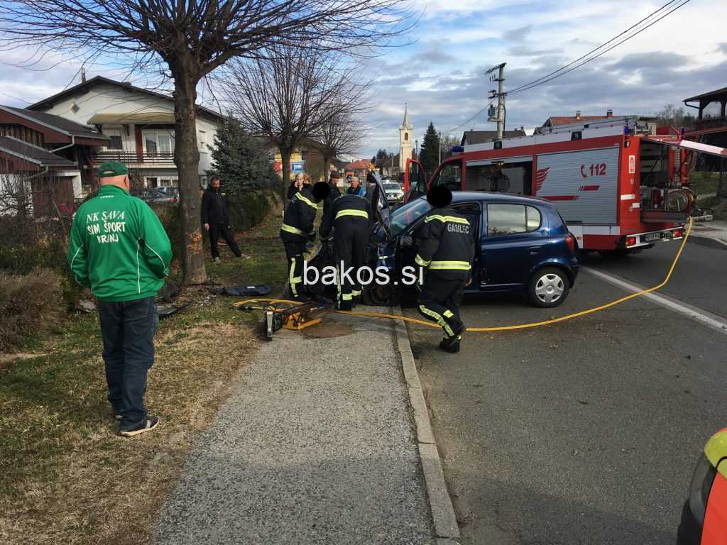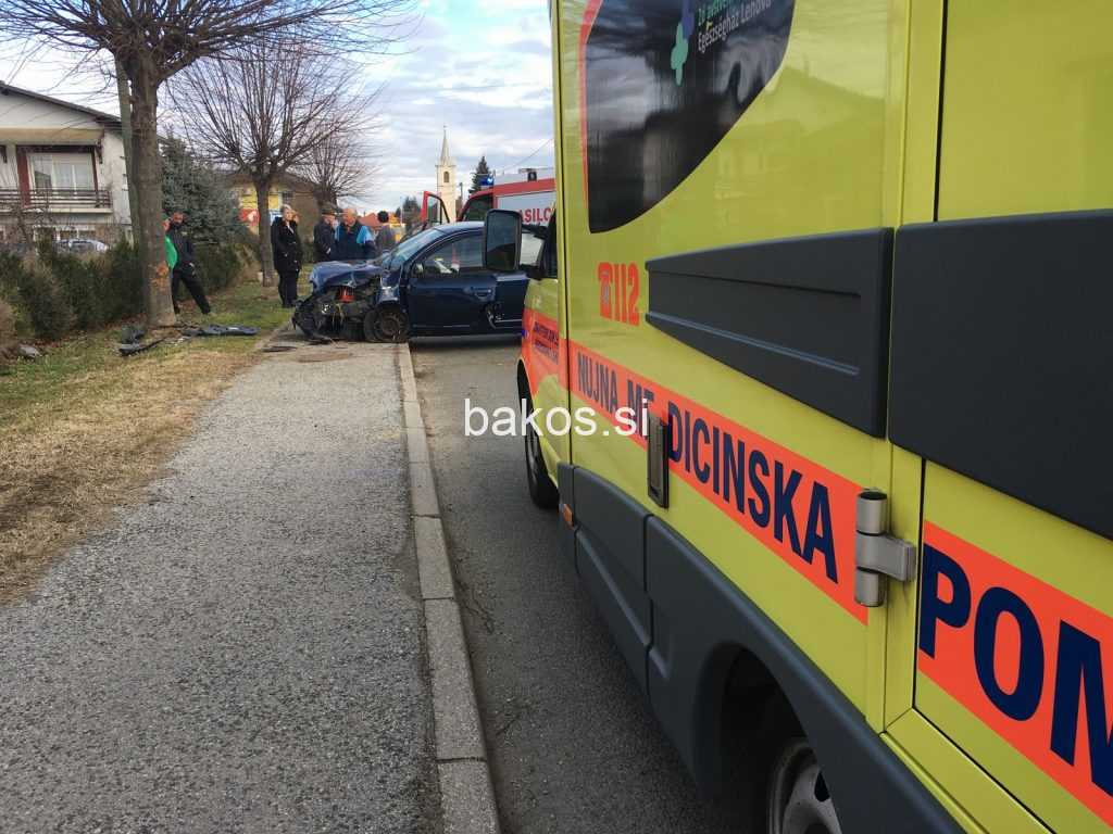 Starejša voznica je nenadoma zapeljala na pločnik in nato v drevo…