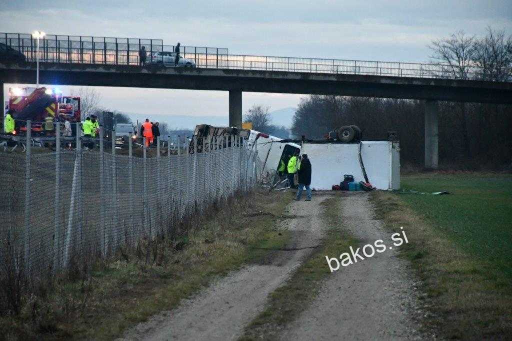 Kratko smo že poročali o tem, da so policisti danes, malo po 5. uri bili obveščeni o hudi prometni nesreči na pomurski avtocesti med Gančani in Mursko Soboto, v smeri Murske Sobota, v kateri je bil udeležen avtobus romunskih registrskih oznak. Po prvih podatkih sta v nesreči najmanj dve osebi izgubili življenje, več oseb pa je telesno poškodovanih. Ogled kraja prometne nesreče trenutno poteka. Avtocesta v smeri Murske Sobote oz. Maribora je še vedno v celoti zaprta.