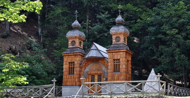 V začetku leta 1915 je Kranjska gora postala pomembna strateška točka zaradi Soške fronte, ki se je pojavila med Avstro-Ogrsko in Italijo na reki Soči. Zaradi tega je vojska Avstro-Ogrske ukazala nujno izgradnjo ceste prek prelaza Vršič, ki bi povezala dolini rek Soče in Save. Cesta je bila nujna za hitrejši prehod avstrijskih enot in vojaške opreme prek prelaza. Za izgradnjo ceste so uporabili ruske vojne ujetnike. Gradnja se je pričela maja 1915 in pri sami izgradnji je sodelovalo okoli 10.000 ruskih ujetnikov. Domneva se, da je med samo gradnjo ceste umrlo od 170 do 300 Rusov in od 10 do 80 avstro-ogrskih vojakov, ki so stražili ujetnike. Samo plaz 8. marca 1916 je zahteval 110 žrtev med Rusi in 7 avstro-ogrskih stražarjev. Preživeli ruski ujetniki so leta 1916 v spomin umrlih tovarišev postavili kapelico. (M.S.)