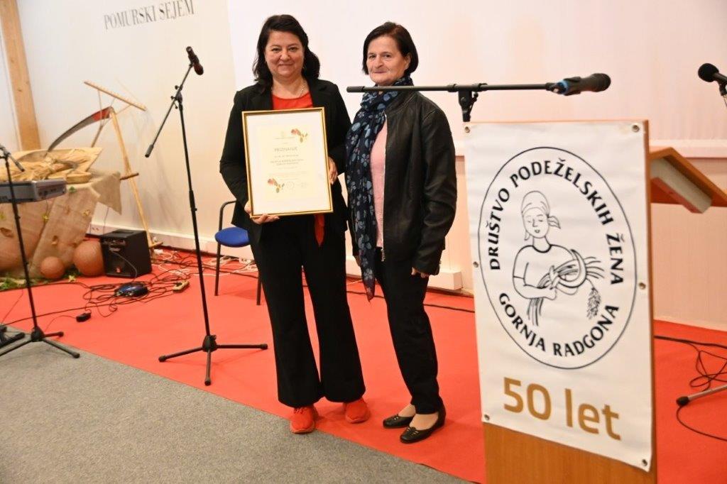 Kakor je ob vsaki okrogli obletnici navada društvo izroča zaslužnem članom, in tistim, ki jim pomagajo z nasveti ali s sponzorstvo, priznanja in zahvale Posebne zahvale so bile tokrat deležne vse dosedanje predsednice, ki še živijo. Med njimi so bile: Mimica Dirnbeg, Angelca Rakuša, Jožica Jančar, ki je društvo vodila pred sedanjo Vesno Bratuša. Jožica, se je v imenu prejemnic, zahvalila predsednici Vesni, da so se na tak način spomnili na njihovo vodenje društva. Dejala je tudi, da je vesela, da sedanja predsednica Vesna Bratuša, naprej uspešno vodi društvo. Prireditev so zaključili s prijetnim druženjem in pogostitvijo, za kar je poskrbela Turistična kmetija Benko iz Spodnje Ščavnice.