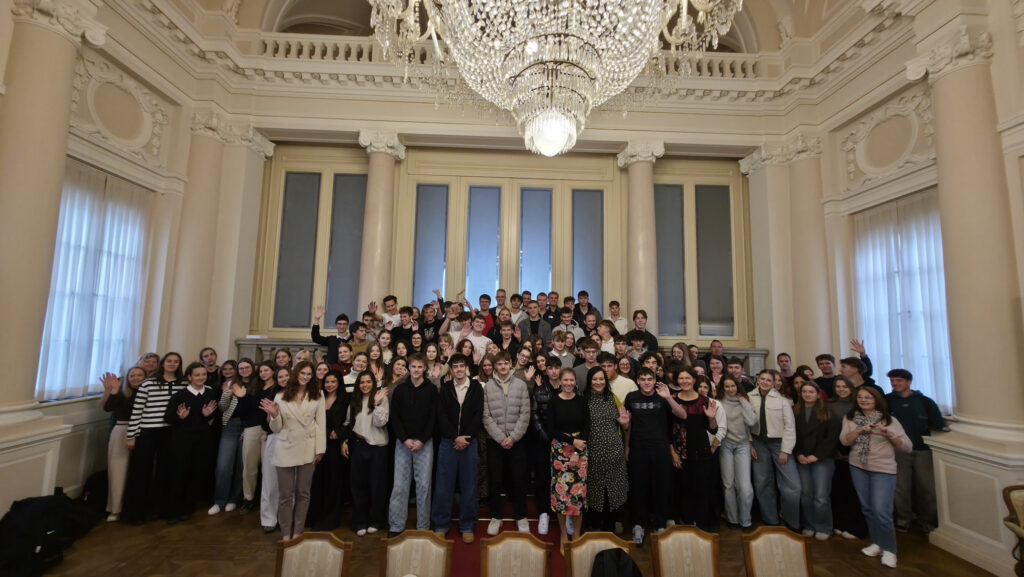 Na Vladi Republike Slovenije so danes gostili dijake Gimnazije Murska Sobota in z njimi spregovorili o delu in nalogah vlade. Predstavnica ministrstva za vzgojo in izobraževanje pa se je z njimi pogovorila tudi o odgovornem ravnanju na spletu.