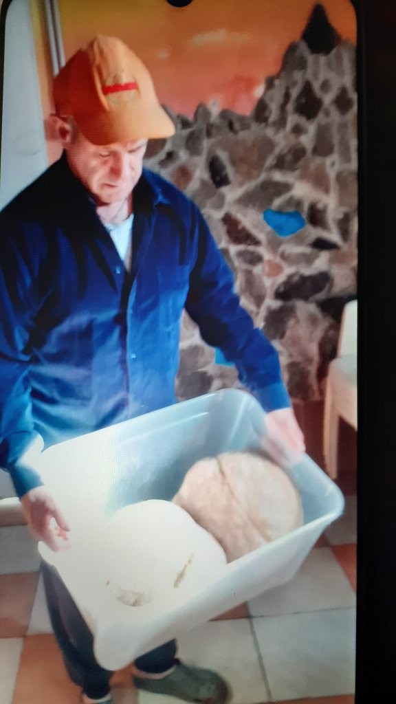 Ko si je obnovil hišo, sam pravi, da si je uredil dom, kjer sedaj živi z življenjsko sopotnico Jožico, se je lotil postavitve »pekarne«. Zakaj pekarne? Namreč tik ob hiši je postavil posebno poslopje, v njem pa krušno peč v kateri peče kruh, kar ga je zaznamovalo že, ko ga je pekla njegova pokojna mati. O tem nam je povedal: »V preteklosti nismo kruha kupovali, kajti pekli smo ga doma. Mati ga je pekla, ko ga je zmanjkalo. Ker sem ob obnovi hiše porušil staro kmečko krušno peč, sem le nekaj korakov vstran od hiše postavil manjše poslopje, ki je sedaj »domača pekarna«. Poslopje in peč sem sezidal sam. Čeprav nisem zidar, sem po ogledih peči, ter pogovorom z mojstrom, ki je zidal peči, sam pristopil k postavitvi peči. Peč mora biti grajena tako, da se v njej akumulira toplota za pečenje kruha. Pomemben je »velb«, obok, ob tem pa tudi dno peči, ki je »poflaštrano, rekli bi tlakovano z doma žgano opeko. Pod opeko pa je nasipano grobo »kižlovje«, to so malo debelejši prodniki, ki imajo nalogo akumuliranje toplote za pečenje. V preteklosti so v krušni peči kuhali tudi druga jedila. Spominjam se, da smo doma še imeli take posode, ki smo jim rekli »kropnce«. Peka močnikov ali štrukljev pa se je odvijala v »lončenih plehih«, ki so bili, da se ne bi razleteli, »zarinkani« z žico. Plehe so z žico »rinkali« piskrovezi. Porikali so tudi kropnce. Jaz v peči ne kuham več, saj sem jo zgradil le za peko kruha.«