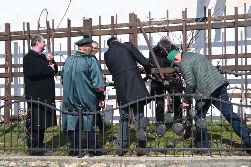 Dvajsetič so svečano obrezali »Čolnikovo trto«, radgonsko ranino in jurko; Poleg predsednika društva so rezali: župan, župnik, vitez, viničar, častni občan, kletar…