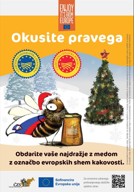 Kakovost, pristnost in številne pozitivne lastnosti medu in čebeljih pridelkov nam dajejo možnost, da letos svojim najbližjim podarimo razkošno darilo, ki je plod neokrnjene narave. V Sloveniji so predvsem pri čebelarjih na voljo 4 skupine medov iz shem kakovosti: Slovenski med z zaščiteno geografsko označbo, Kraški in Kočevski gozdni med z zaščiteno označbo porekla ter med in čebelji pridelki iz ekološke pridelave. Prepoznamo jih po zaščitenih simbolih. Med ni zgolj sladilo, temveč nepogrešljiv element kulinaričnega ustvarjanja. Poleg uporabe v kombinaciji s kruhom in maslom ter sladkanja čaja, se poda k sirom, oreščkom in suhomesnatim izdelkom ter je lahko sladilo pri decembrskih sladicah, kot so medenjaki ali potica. Prav tako navdušuje kot dodatek marinadam za meso, prelivom za solate ali omakam. Z darilom, ki vključuje kakovosten med iz shem kakovosti ali čebelje pridelke, obdarovanca povabimo na raziskovanje kulinaričnih užitkov in ga navdihnemo k odkrivanju novih okusov.