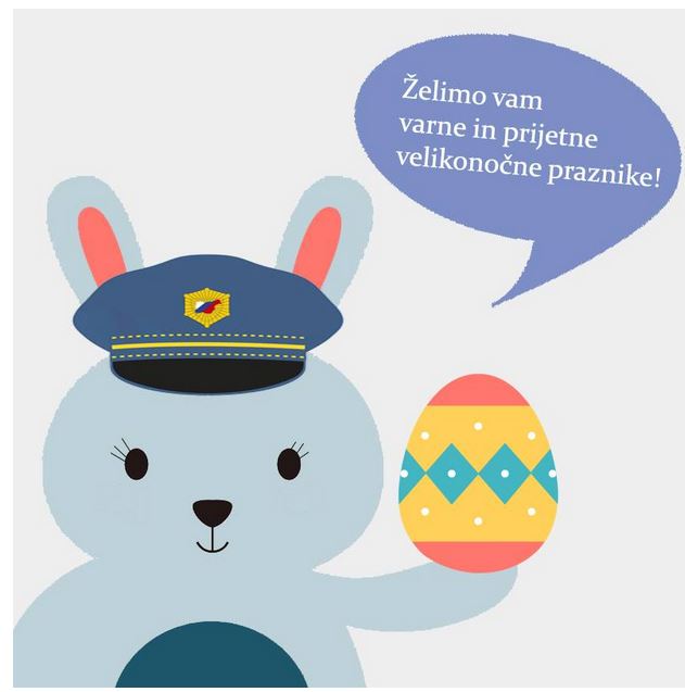 Pred nami je velikonočni konec tedna, ko se bo na pot znova odpravilo več ljudi kot običajno. Zaradi pričakovane gneče tako na cestah kot na mejnih prehodih vse voznike opozarjamo na previdno vožnjo in strpnost. Pred odhodom od doma poskrbite za varnost svojega premoženja. Posebno previdnost pa namenite tudi varnemu pokanju s karbidom in možnarji.