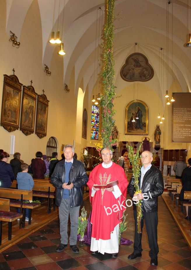 Tudi ob letošnji cvetni nedelji je Tončeku Kokolju skupaj s svojimi prijatelji uspelo izdelati presmec, za katerega so material pridobili v gozdu ob mejni reki Muri, ki teče tudi skozi njihovo vas. Po tem, ko so presmec izdelali na Meleh in ga pripeljali v radgonsko cerkev, smo ga tudi ovekovečili skupaj z vsemi Melajčani, kateri so letos sodelovali pri njegovi izdelavi.