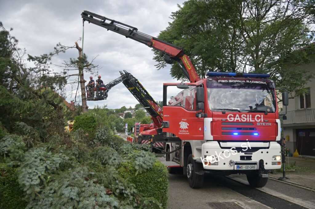 Sever in severovzhod države, vse od Pomurja, čez osrednjo Štajersko do Koroške in tudi naprej čez Gorenjsko, je včeraj okoli četrte ure zjutraj, zajelo hudo neurje, večinoma z močnim dežjem in vetrom, ponekod tudi s točo, kakršno ne pomnijo niti najstarejši prebivalci. Ni bilo potrebno veliko časa, ponekod le nekaj deset minut, da so mnogi posamezniki, ustanove, zavodi, gospodarski subjekti in tudi društva utrpeli velikansko materialno škodo, ki se „meri“ v milijonih evrov. Res je sicer, da je neurje uničevalo povsod od Lendave, čez Dolensko, Ravensko in Goričko, potem čez Prlekijo in Slovenske gorice, proti Mariboru in naprej po Dravski dolini proti Koroškem, je najhuje bilo na območju občin Apače, Gornja Radgona, Cankova, Radenci, Tišina, Turnišče, Beltinci, Dobrovnik in Murska Sobota, čeprav tudi ostalim območjem v okolici ni prizaneslo. Povsod je veter odkrival strehe, izruval več dreves, ponekod je zmanjkalo električne energije, voda je zalila ceste, hiše, hale in kleti. Uničene so bile desetine kilometrov javnih cest in drugih infrastrukturnih objektov. Seveda o tem, koliko je uničenih poljščin, sadovnjakov, vinogradov pa ne gre izgubljati besed. Na terenu je posledice neurja odstranjevalo na stotine gasilcev, ki si gotovo zaslužijo pohvale, saj je v primerjavi z njihovo požrtvovalnostjo ponekod bilo veliko radovednežev, ki so samo ovirali sanacijo, namesto da bi pomagali. So pa vsekakor izjemno dejavni bili zaposleni v komunalnih in cestnih podjetjih, ki so sami, ali skupaj z gasilci med drugim začasno prekrili skoraj 100 streh, ne le stanovanjskih in gospodarsko-kmetijskih objektov, temveč tudi tovarn, domov starejših, šol in vrtcev. Hkrati so pospravili na stotine podrtih dreves, ki so padla na ceste ali na druge javnih površinah. Sploh pa je po parkih, gozdovih in drugje padlo na tisoče dreves, kar tudi ne pomnijo niti najstarejši prebivalci. Tokrat so, po poročilih s terena učinkoviti bili tudi električarji, ki so požrtvovalno delali, da bi vsi državljani bili oskrbljeni z elektriko. Res je sicer, da so posamezniki bili užaljeni in razočarani, a vsem nikakor niso uspeli ugoditi v kratkem času. Zaradi močnih neviht je namreč samo na območju, ki ga z elektriko oskrbuje Elektro Maribor (Pomurje in Podravje) brez toka ostalo najmanj 50.000 odjemalcev. Čeprav je po četrti uri zjutraj hudo bilo povsod, so iz Murske Sobote poročali tudi o orkanskem vetru, ki je dosegal hitrosti okoli 100 km/h, v bližnje naselju Rakičan, kjer so številne javne ustanove, med njimi tudi regijska bolnišnica, pa so izmerili kar 103 km/h. Zato niti ne preseneča, da je tamkajšnji park in še marsikaj drugega utrpelo še dodatno škodo. Poleg doma starejših v Rakičanu, je veliko škodo utrpel tudi tamkajšnji vrtec, enako pa še dve enoti vrtca v Murski Soboti. Soboški župan, mag. Damjan Anželj je po ogledu posledic neurja povedal, da je največ škode nastalo v mestu Murska Sobota in naselju Rakičan, a tudi v drugih primestnih naseljih. Na terenu so bile vse razpoložljive enote, gasilci ter same občanke in občani, ki so pomagali sanirti nastalo škodo. Delavci komunalnega podjetja so sprostili vse ceste, tako da je vsaj promet bil nemoten. „Velika škoda je na premoženju in tudi v sami naravi, saj je podrlo veliko dreves v mestnem in rakičanskem parku. Poškodovan je drevored proti Rakičanu in veliko dreves ob stanovanjskih hišah. Škodo je težko oceniti, ampak po tem, kar sem do sedaj uspel videti, bo to krepko čez deset milijonov škode,“ nam je zatrdil Anželj.