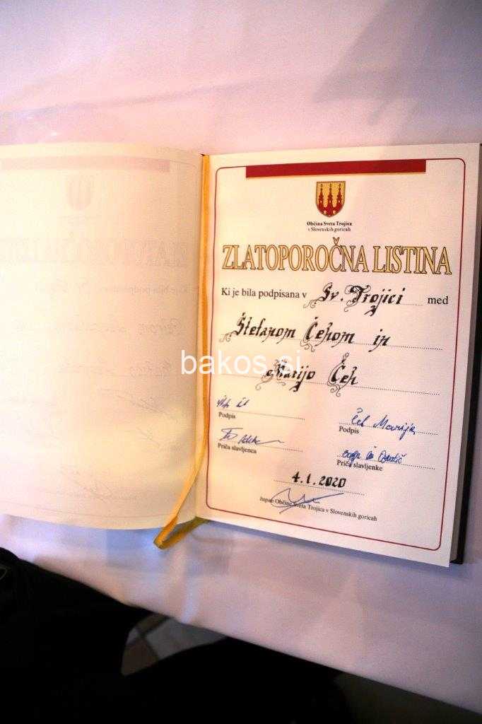 Še se niso utihnila praznovanja božičnih in nato novoletnih praznovanj, a sta zakonca Marija in Štefan Čeh z Bišečkega Vrha v Slovenskih goricah imela nov pomemben dogodek za praznovanje. Že prvo soboto v letu 2020 sta namreč, v krogu najbližjih in prijateljev, v gostišču Štajerska hiša kulinarike v Gočovi, obhajala visok skupni življenjski jubilej – zlato poroko. Vse skupaj se je začela z obiskom cerkve Sv. Bolfenka v Trnovski vasi, kjer je župnik Franc Mlakar, pri darovani sv. maši, opravil cerkveni obred. Od tod so se številni svatje z zlatoporočencema odpravili v Gočovski dvorec, kjer je potekal civilni zlatoporočni obred, s katerim sta potrdila svojo 50 – letno zakonsko zvestobo.