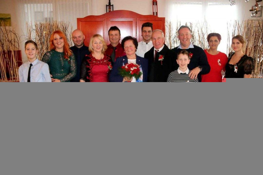 Življenjsko zgodbo zakoncev je predstavila Barbara Škrlec Cvetko, ki je ob koncu svojega nagovora dejala: »Pravijo, da ljubezen vse zmore, vsemu kljubuje in vsemu odpusti. Prav takšna lepa in trdna ljubezen veže današnja poročenca Marijo in Štefana…« Slavljenka Marija se je rodila leta 1949 na Ptuju, odraščala pa na Bišečkem Vrhu, v družini 11 otrok. Tu sta si z možem Štefanom ustvarila dom, v katerem so se rodili trije otroci, hčerki Valerija in Sonja, ter sin Aleksander. Veliko veselja so jima prinesli vnuki Marcel, Anže in Anej, na katere sta zelo ponosna. Marija se je posvečala delu na manjši posesti, gospodinjstvu, skrbi za otroke, ob tem pa je tudi, ko še ni bilo toliko konfekcije, s šivanjem. Šivala je tudi poročne obleke za neveste. Štefan se je rodil v družini šestih otrok, leta 1944, v Gočovi. Vso delavno dobo za upokojitev, je bil zaposlen kot pek. Sedaj se skupaj z ženo posveča skrbi za dom in delu na manjši posesti. Sta ena redkih, ki še redita kravo in prašiče za domače koline, ki so zanju praznik, saj se ob njih zberejo otroci z družinami. Vsi so skupaj bili tudi na zlatem piru, katerega so polepšali člani prleško-haloškega Tria Polet, kjer sta zakonca, celo prva, tudi zaplesala…