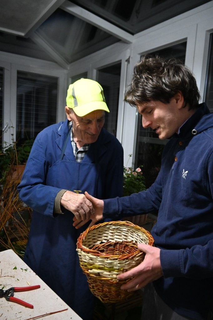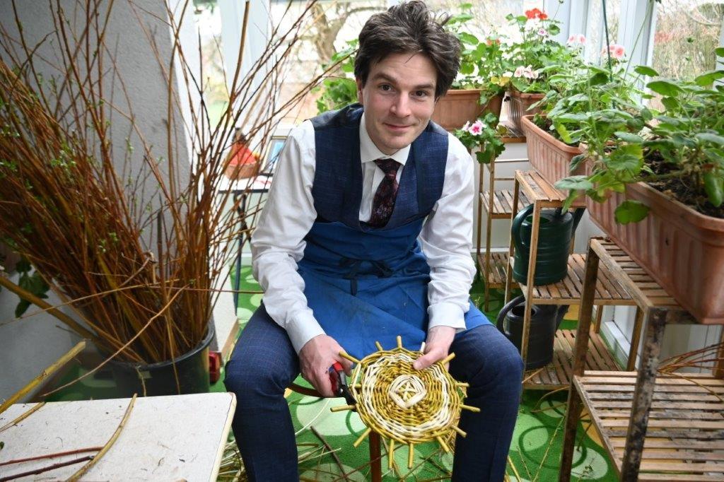 Da staro ročno domače opravilo – pletenja košev iz šibja, ki sodi v slovensko kulturno dediščino, ni mačji kašelj, potrjuje zgodba, ki se je v velikonočnem tednu odvijala v mestu penine in sejmov Gornji Radgoni. Glavna akterja sta bila predavatelj, prof. dr. Felix Tenie s prestižne Oxfordske univerze v Angliji, tokrat kot učenec, in dedek njegove življenjske sopotnice Iris, Ludvik Kramberger, sicer pa tudi naš najverjetneje najstarejši (88) aktivni fotograf, gledalca pa poleg Iris, še njuna otroka. Učenec ročnih del Felix Tenie je doktor znanosti iz kvantne fizike in je doktoriral na Oxfordski univerzi, kjer sedaj tudi predava. Sicer pa izhaja iz Hamburga v Nemčiji, kje živijo njegovi starši in je tam tudi odraščal. V Oxfordu si je, z Iris Kramberger, ki izhaja iz Melov pri Gornji Radgoni, katera je prav tako na Oxfordski univerzi doktorirala iz kemijskih znanosti, ustvaril družino, katero sedaj bogatita sin Magnus in hčerka Kalliope. Tam sta si kupili dom, kjer uživata z družino v hiši, ki jo obdaja vrt in sadno drevje.