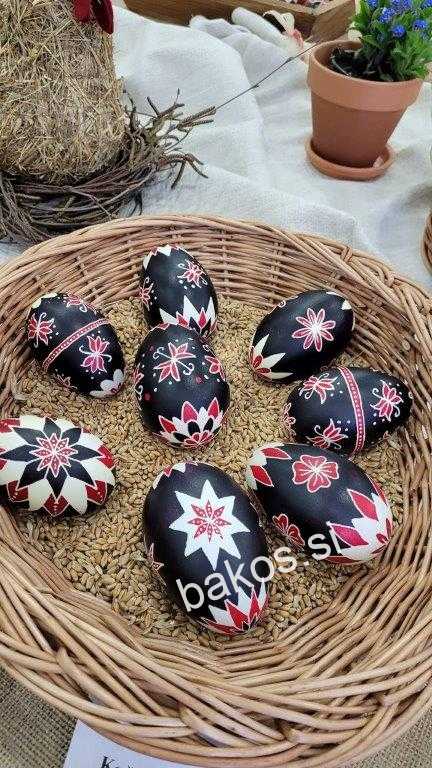 Kot rečeno, v sklopu dvodnevne prireditve so bili na ogled čudovito okrašeni pirhi, izdelani s tradicionalnimi tehnikami, predvsem tisti, izdelani z batik tehniko, za katere so značilni enostavni vzorci. Pravi mojstrici tehnike batik in hkrati najprepoznavnejši Dobrovničanki sta sicer Anna Car in žal že pokojna vrhunska poznavalka Elizabeta Urisk, ki je za seboj pustila tudi avtorsko knjižno zbirko. Pri pripravi pirhov po načinu batik, ki ga pri nas poleg Dobrovnika uporabljajo le še v Beli krajini, potrebujemo pisalko, čebelji vosek – za odstranjevanje voska tudi svečo oziroma plamen – ter rdečo in črno barvo za barvanje. Najbolj znani vzorci so dobrovniški in petišovski, še danes pa se najpogosteje uporabljajo običajne, stare motive, ki so ravne in nazobčane črte, vijuge, krogi oziroma pike ter tako imenovano “zajčje uho.” Za delo se uporablja posebna pisalka. Pisalka ima kovinski lijak, ki se napolni s čebeljim voskom in se segreva nad plamenom. S pomočjo vročega voska se potem na jajce nariše vzorec. Jajce se nato obarva v hladni barvi, narisan vzorec pa ostane bel. Ob dodajanju vzorčkov se lahko postopek večkrat ponovi-tako dobimo večbarvni batik. Tak način krašenja pirhov je bil nekoč zelo razširjen v Prekmurju. V drugi polovici 20. stoletja se je ta tehnika krašenja počasi opuščala in je skoraj povsem izumrla. Ohranila se je le v nekaterih vaseh. V zadnjih letih se stari načini izdelovanja pirhov spet obujajo in so postali zelo popularni. Za lepši sijaj velikonočnih pirhov so jih premazali z mastjo ali oljem…