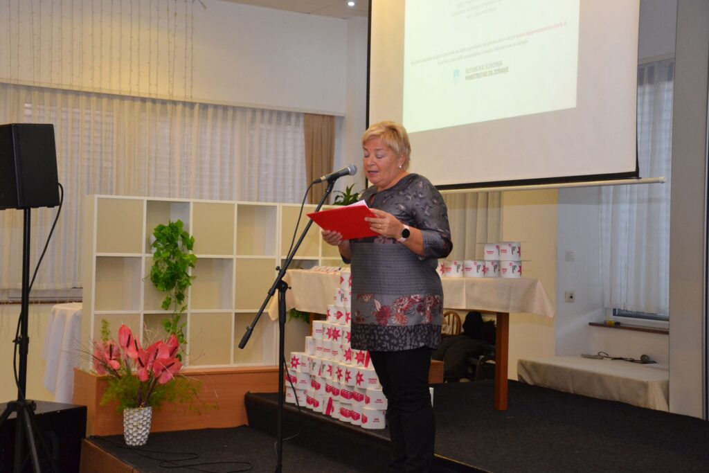 Ocenjevanje pa bomo v naslednjih letih izvajali samo v dveh kategorijah, in sicer v kategoriji mestnih občin in kategoriji ostalih občin, in zasledovali cilj, da bi vsaka občina v Sloveniji imela vsaj eno lokacijo javnih stranišč, kajti zaskrbljeni smo nad podatkom, da od 105 občin, ki smo jih do sedaj uspeli vključiti v ocenjevanje, kar 54 nima javnih stranišč.«