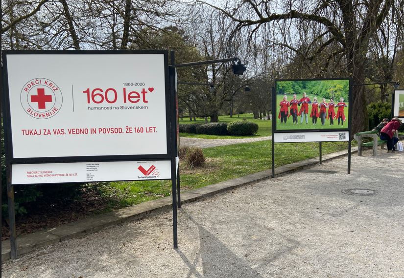 Že vse od 27. marca 2026 pa si lahko v Jakopičevem sprehajališču v ljubljanskem parku Tivoli ogledate razstavo fotografij »Tukaj za vas. Vedno in povsod. Že 160 let.«, ki prinaša prerez našega dela in udejstvovanja zadnjih desetih let – od srčnih prostovoljcev, naših prizadevanj, da zaščitimo humanost, preko odziva na epidemijo covida-19, požar na Krasu in stoletne poplave poleti 2023 ter vse do različnih socialnih dejavnosti, letovanj otrok iz socialno šibkejših okolij, dela z migranti, naših raznovrstnih ekip prve pomoči – njihovih usposabljanj, vaj, mednarodnih sodelovanj do državnih preverjanj; in nenazadnje krvodajalcev, brez katerih življenja ne bi tekla dalje. Majhen, a izredno pomemben in dogodkov poln košček v naši bogati, 160-letni zgodovini, si lahko ogledate vse do 1. junija 2026.