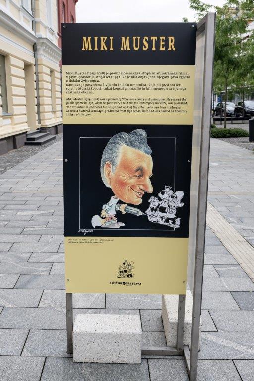 Stoto obletnico rojstva enega največjih slovenskih ustvarjalcev, pionirja stripa in animacije Mikija Mustra, katerega delo predstavlja neprecenljiv del slovenske kulturne dediščine, so v njegovi rojstni Murski Soboti obeležili z otvoritvijo ulične razstave na Slovenski ulici v središču mesta. Ulična razstavo so pripravili v Pomurskem muzeju Murska Sobota, njena avtorica je Metka Fujs, predstavil pa jo je direktor Branko Kerman. Pred samo otvoritvijo razstave je v bližnjem Hotelu Belmur potekala predstavitev razstave ter pogovor s sinom Miklavžem Mustrom, ki je z zbranimi delil nekaj osebnih zgodb o očetu in kako je kot otrok doživljal obiske v Murski Soboti, kjer je na današnji Slovenski ulici živela njegova babica. Založnik del Mikija Mustra in njegov prijatelj Aleksander Buh pa je predstavil projekt ponatisa Mustrovih stripov in njegove pobude za obeležitev Mustrovega jubilejnega leta v Sloveniji.