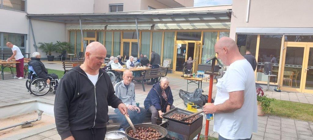 V Domu starejših občanov (DSO) Gornja Radgona so hladnejše obdobje, tudi tudi sredi letošnjega oktobra, kljub nekoliko nižjim temperaturam, obeležili s prijetnim druženjem v duhu Oktoberfesta in kostanjevega piknika. Stanovalce in vse druge prisotne je naprej pozdravila direktorica doma, dr. Suzana Bračič Arcet, ki je vsem zaželela prijetno druženje na skupnem jesenskem dogodku. Hkrati je zahvalila priljubljenem harmonikarju Robertu Majeriču, ki že med letom velikokrat poskrbi za glasbeno popestritev različnih aktivnosti v radgonskem DSO. Posebno zahvalo je namenila tistim stanovalcem in zaposlenim, ki so se odpravili v gozd in nabrali kostanje za tradicionalni domski piknik, kjer nikomur ni nič manjkalo.