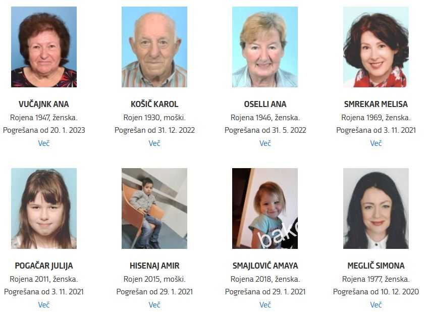 Kot so nam še pojasnili na Generalni policijski upravi, na seznamu pogrešanih, so osebe, ki so iz znanih ali neznanih vzrokov odsotne iz določenega okolja, o čemer je policija obveščena oziroma to sama ugotovi. „Vse, ki bi pogrešano osebo opazili ali kar koli vedeli o njenem izginotju, prosimo, naj o tem obvestijo najbližjo policijsko postajo ali pokličejo na telefonsko številko 113 oziroma anonimni telefon policije 080 1200,“ poudarjajo na GPU. Pri vseh primerih pogrešanja, kjer pogrešana oseba ne izjavi svojcem, da bo odšla ali da bo storila samomor, gre lahko v tem primeru za nesrečo, samomor, lahko celo na ugrabitev, umor ali druga nasilna dejanja, pravijo policisti. Glavni namen preiskovanja pogrešanih oseb v teh primerih je iskanje pogrešane osebe in iskanje znakov, ki kažejo na kaznivo dejanje…