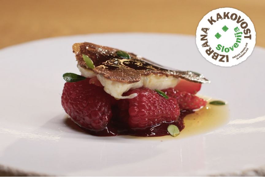 Na topel krožnik damo žlico kreme iz robidnic, priložimo sadno solato in čez njo položimo pečen sir. Jedi dodamo sveža zelišča in jo zaključimo z žlico rjavega masla. (Naša super hrana)