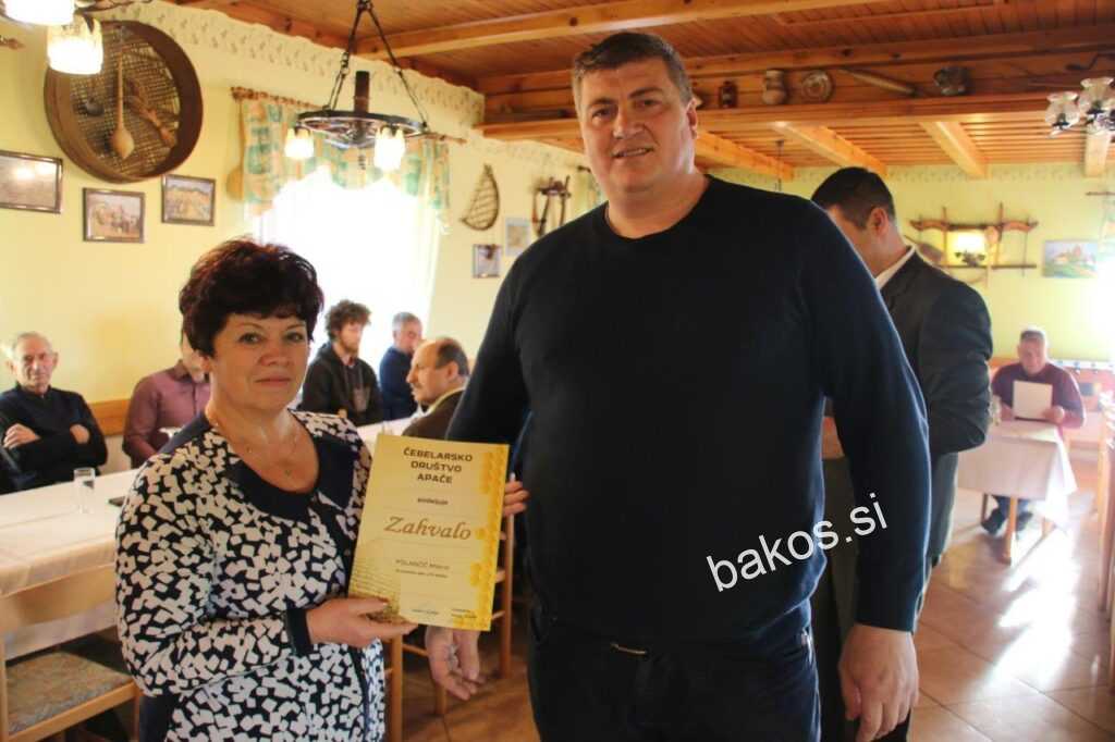 Apaški čebelarji so zbor zaključili s podelitvijo priznaj 12 čebelarjem. Med dobitniki je bil tudi njihov najstarejši član, 89 – letni Alojz Breznik, ki je član čebelarskih društev že 72 let. Sicer so priznanja prejeli: Milena in Jože Polančič, Boštjan Kozar, Irena Horvat, Marija Fekonja Rožman, Alojz Rožman, Matjaž Zidarič, Silva Brezner, Goran Brezner, Bruno Jančar in Palčkovi godci. (L.K.)