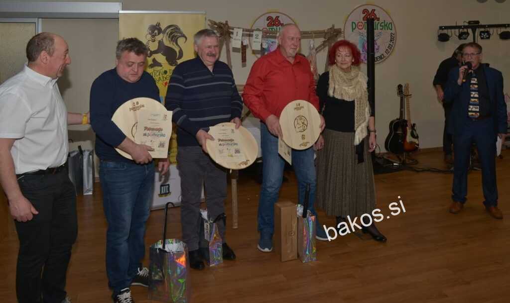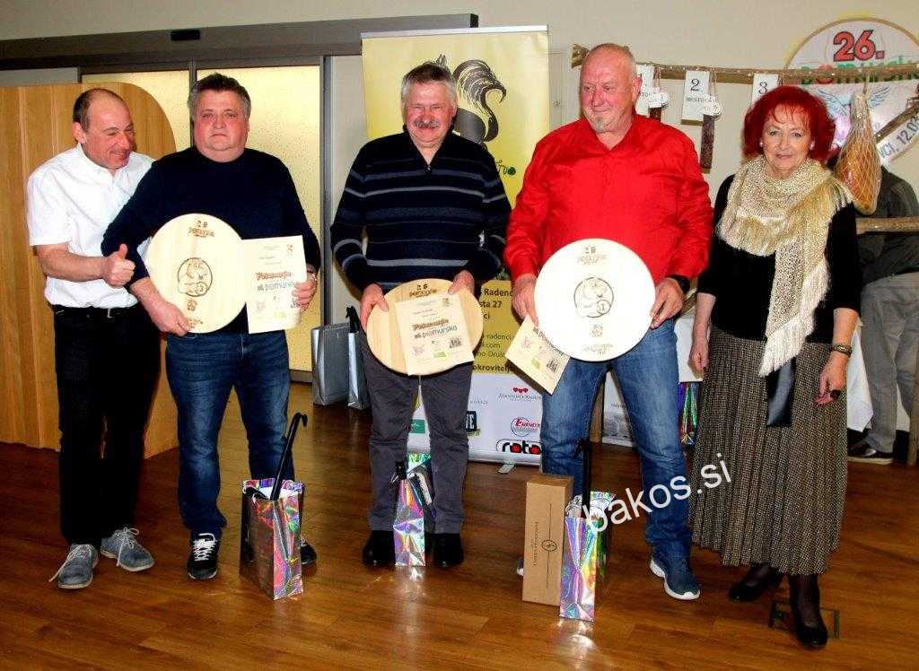 Vsem udeležencem so organizatorji, na čelu s predsednico TD Radenci Karmen Žibret Kavčič, podelili priznanja in praktične nagrade. Na svečani prireditvi, v hotelu Radin v Radencih, katero je povezoval Emil Šmid, so za zabavo skrbeli pevski dalmatinske klape Solaris, ter glasbenik iz Ormoža, Bojan Zore. Zanimivo je tudi, da so organizatorji pripravili „tekmovanje“, kdo bo najbližji teži pršuta in nagrada, omenjeni pršut težek 6.954 gramov, je šla v Dolenjske Toplice. Ob tem smo v Radencih izvedeli za nekaj statističnih podatkov po pomurskih salamiadah, ki so se začele odvijati pred 26 leti v gostišču „Suzana“ v Gornji Radgoni, nato pa se je preselila v Radence. Na vseh 26 pomurskih salamiadah je bilo ocenjeno skupaj 1708 vzorcev salam,