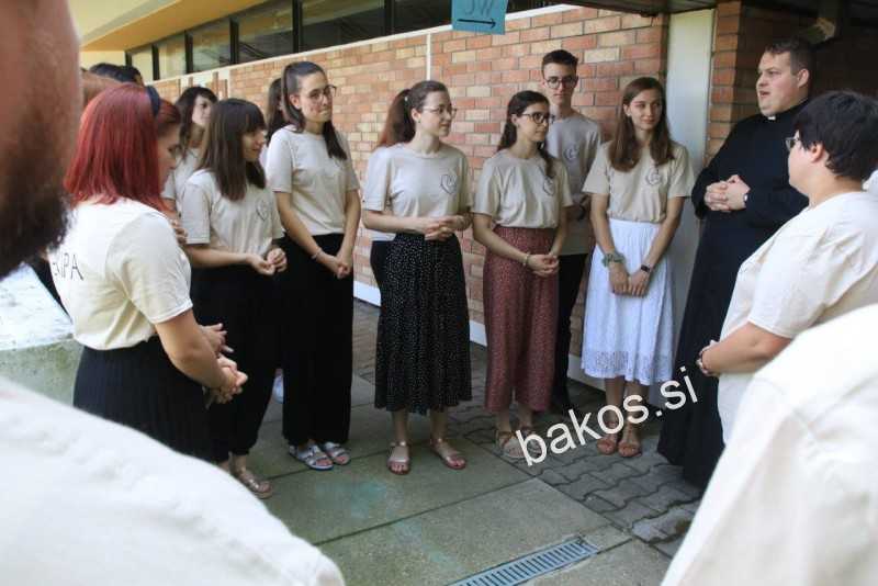 V ta dom smo letos priromali 27. 8. 2022 v župnijo sv. Cirila in Metoda v Radencih. Ob 14.00 smo otvorili skupno dogajanje s pesmijo “Hozana na višavah” in se tako podali na pot kateheze, ki jo je vodil letošnji novomašnik Janez Meglen iz novomeške škofije. Skozi svojo pot duhovništva nam je predstavil, kaj pomeni zaupanje v Boga ter nam vlil poguma za naslednje korake. Predstavil nam je drugačen pogled sv. maše, kjer se združijo tri občestva: krščansko občestvo med seboj, občestvo v vicah ter občestvo, ki je že pri Bogu in ga slavi. Tako se pri sv. maši združimo vsi v eno, kar nas uči Jezus: “… da bi bili eno, kakor sva midva eno: jaz v njih in ti v meni, da bi bili popolnoma eno” (Jn 17, 22-23a).