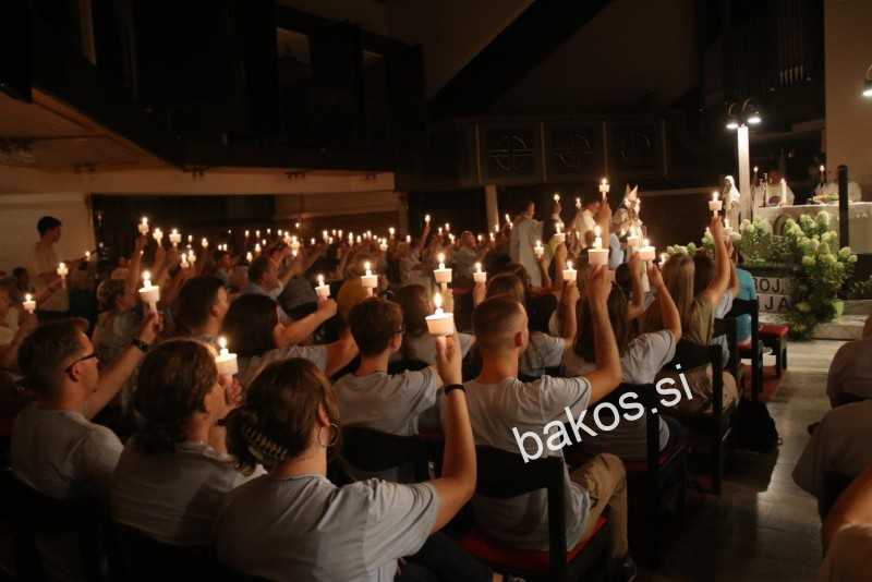 Ob 18.00 smo začeli z molitvijo rožnega venca in molitvijo k sv. Duhu. Slovesno sv. mašo je vodil soboški škof msgr. dr. Peter Štumpf ob prisotnosti duhovnikov s celotne Slovenije, ki so na dogodek prišli z mladimi iz svojih župnij. Pred oltar smo prinesli zahvale, prošnje in molitve ter jih predali Bogu v naročje. Po prejetem blagoslovu smo zapeli Salve Regina, prižgali svečke in zapeli litanije Matere Božje. Izpolnili smo še zadnjo pot, ki jo hodimo skupaj – po Mariji k Jezusu. Ustavili smo se pri češčenju Najsvetejšega in tako skupaj slavili Boga.