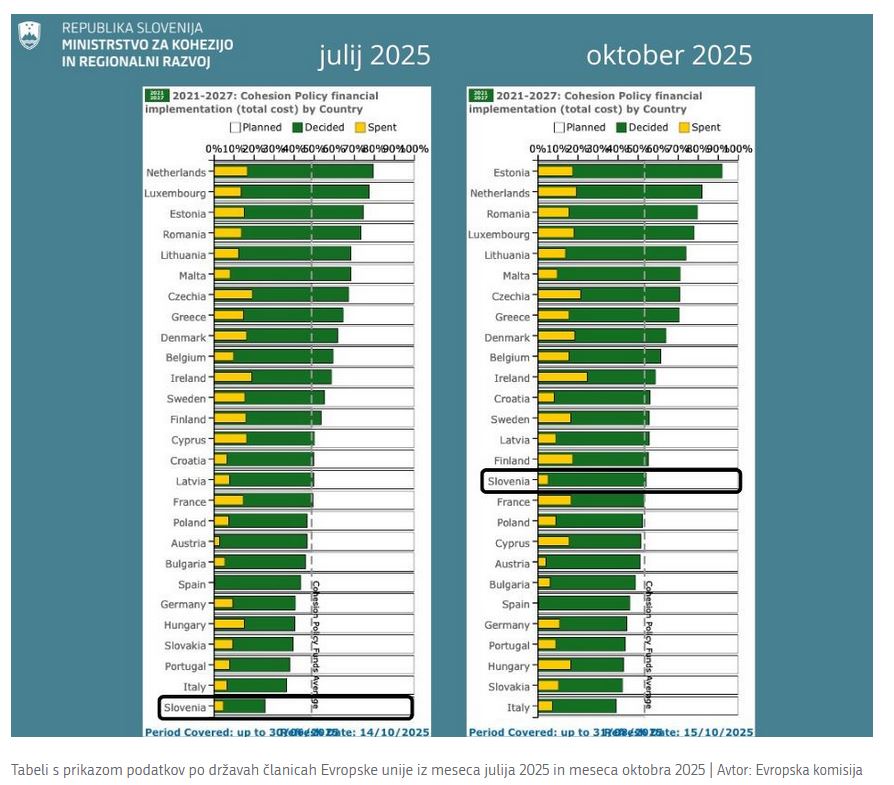 Po zadnjih podatkih Evropske komisije, objavljenih sinoči, je Slovenija zelo pospešila koriščenje evropskih kohezijskih sredstev. Po merilu izbranih projektov po državah članicah je Slovenija napredovala za 11 mest. »To kaže, da smo v začetku leta pripravili dobre ukrepe. Ne bomo odnehali, dokler ne bomo na vrhu,« je ob tem dejal minister za kohezijo in regionalni razvoj dr. Aleksander Jevšek.