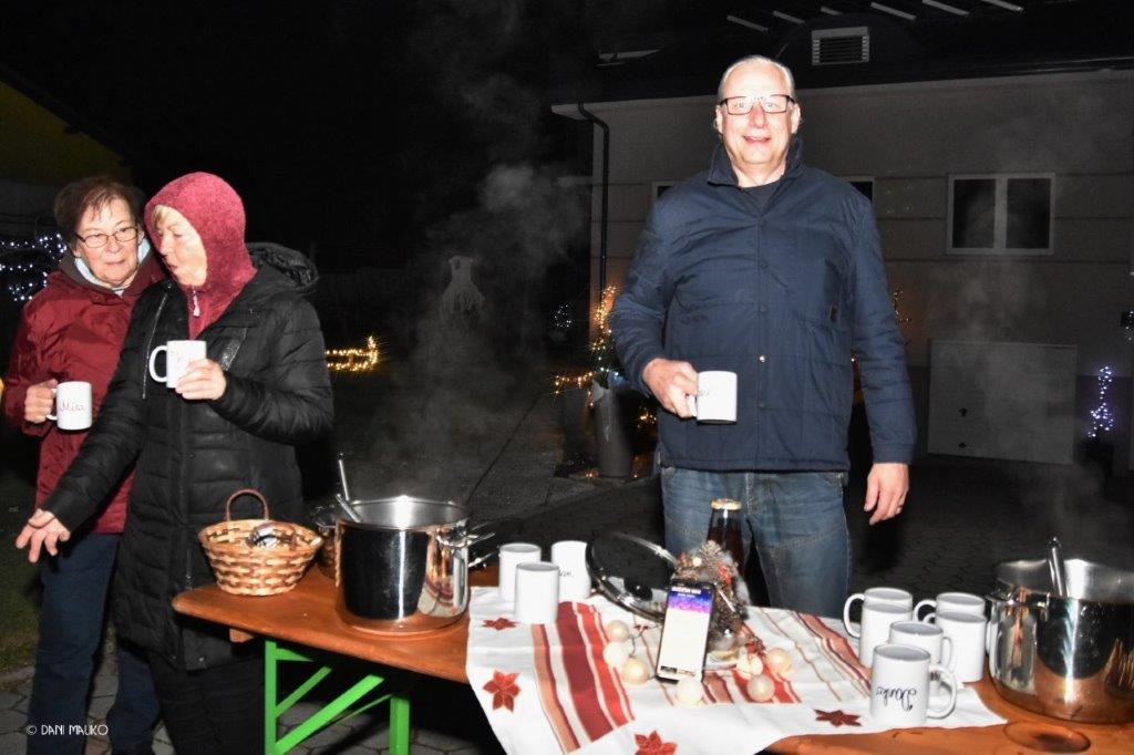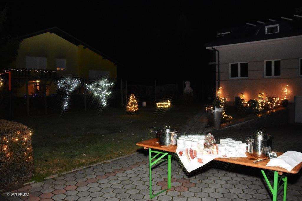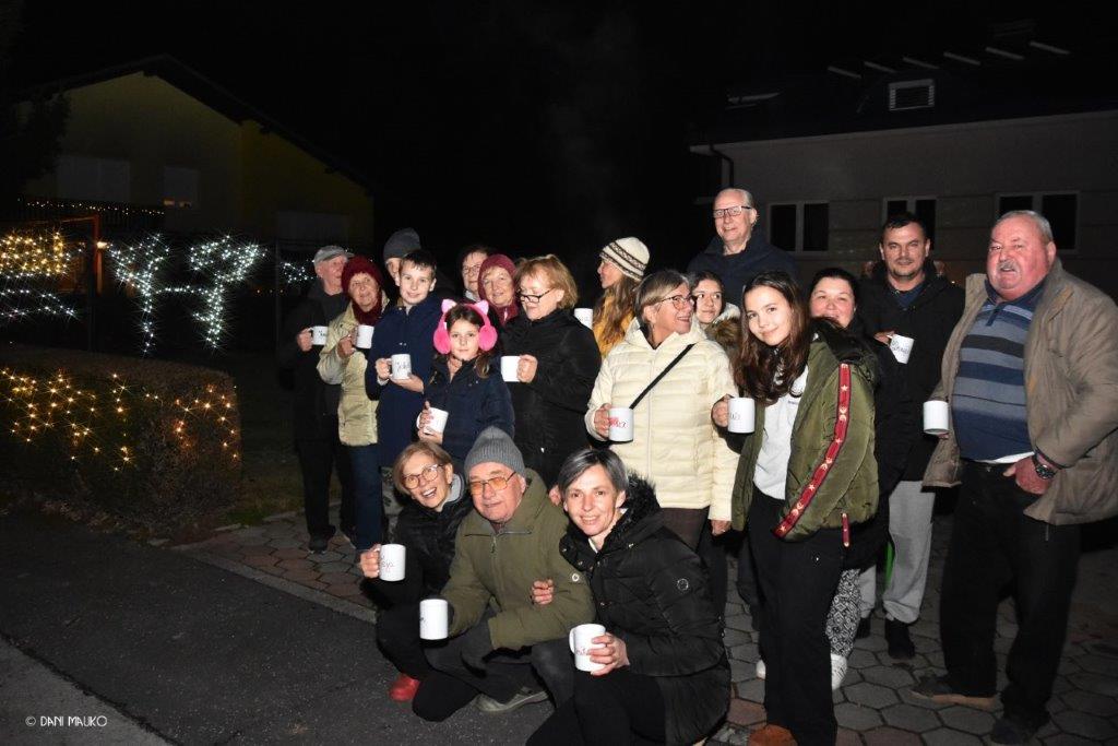 Na lepo okrašeni in osvetljeni ulici so se nato družili, ob čaju in kuhančku, ki so ju bili iz posebnih lončkov, in sicer je na vsakem bilo ime, komu pripada. Manjkalo ni niti prigrizkov, predvsem pa prijetnega klepeta ne. Vse skupaj pa so zaključili v eni izmed hiš oz zimskem vrtu te hiše – pravijo mu „bunker“, kjer so se „posladkali“ s tatarcem in še čem dobrim ter seveda ob dobri kapljici.