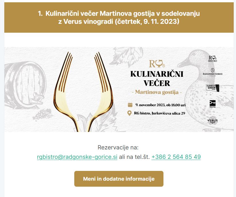 Kulinarični večer Martinova gostija v sodelovanju z Verus vinogradi (četrtek, 9. 11. 2023)