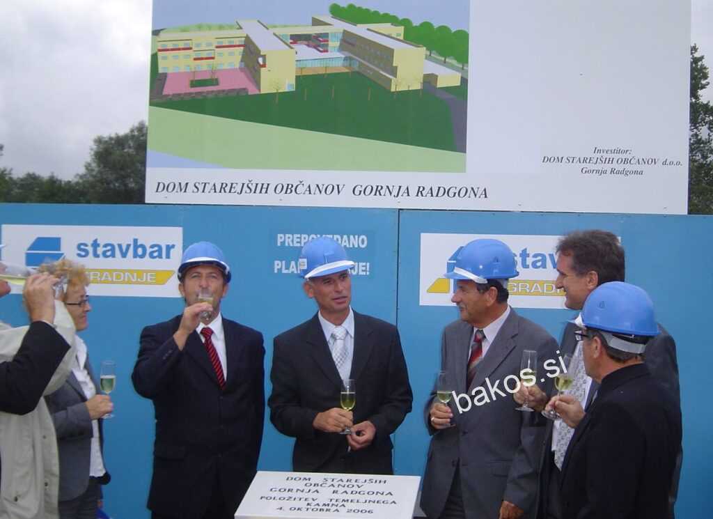 Takratna ministra za delo družino in socialne zadeve ter obrambo, Janez Drobnič in Karel Erjavec, radgonski župan Anton Kampuš, direktor in prokurist Doma starejših občanov d.o.o. Gornja Radgona Marjan Žula in Miroslav Temnik, ter koordinatorja pri urejanju zadev za gradnjo Vinko Rous in Milan Nekrep, so pred skoraj šestnajstimi leti položili temeljni kamen za dom starejših občanov (DSO) na Tratah. Bilo je 4. oktobra 2006, ko je svečano položen temeljni kamen sedanjega DSO Gornja Radgona, katerega je nato v dobrem letu dni zgradilo okrog 160 delavcev mariborskega podjetja Stavbar – Gradnje s kooperanti. Dom pa je bil predzadnjo soboto v maju 2008, uredno predan svojemu namenu, tako dom deluje že 15. leto. Že pred tem, pa so ga skorajda napolnili, saj je bilo 12. februarja 2008, ko sta bila v radgonski DSO sprejeta prva stanovalca, Ljudmila Horvat s Plitvičkega Vrha in Ivan Kores iz Maribora
