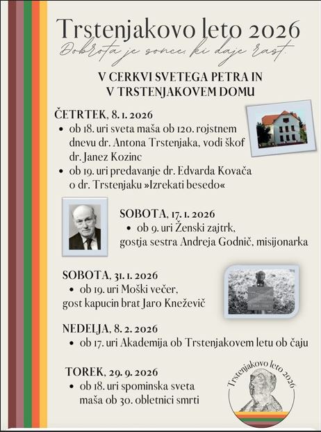 Kot je že nekaj časa znano, je leto 2026 razglašeno za Trstenjakovo leto ob 120 obletnici njegovega rojstva in 30. obletnici njegove smrti. Pričetek dogodkov namenjenih radgonskemu in slovenskemu velikanu bo ta četrtek, 8. januarja, na njegov rojstni dan, ob 18.00 uri v cerkvi sv. Petra v Gornji Radgoni. Spominsko mašo ob tej priložnosti jo vodil soboški škof dr. Janez Kozinc ob somaševanju Trstenjakovega učenca in radgonskega rojaka dr. Edvarda Kovača, filozofa in teologa iz Ljubljane. Za uvod v Trstenjakovo leto bo v četrtek, 8.januarja 2026, tudi prvo letošnje predavanje. O akademiku dr. Antonu Trstenjaku bo spregovoril prav dr. Edvard Kovač z naslovom »Izrekati besedo«.