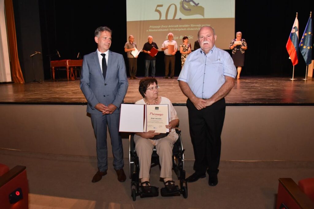 Krovna organizacija, ZDIS je med slavnostnim dogodkom podelila posebna priznanja posameznikom in organizacijam za njihovo prizadevno in uspešno delo pri uresničevanju in izvajanju pravic invalidov ter za razvoj in krepitev medsebojnih humanih odnosov. Med prejemniki priznanj sta bili MDI Lendava in Občina Lendava, ki je priznanje prejela za svojo aktivno vlogo pri projektu “Občina po meri invalidov” in trajno partnerstvo pri izboljševanju življenja invalidov v občini. Priznanja so prejeli še: Ivan Časar, Jožef Kuprivec, Magda Vugrinec, Miro Herbst in Marija Balažic, tisti posamezniki v društvu, ki so z izjemno predanostjo in nesebičnim delom prispevali k razvoju invalidskega gibanja ter spodbujanju humanih odnosov v lokalni skupnosti in društvu. Svoje misli in zahvalo je v imenu prejemnikov priznanj delila Magda Vugrinec.
