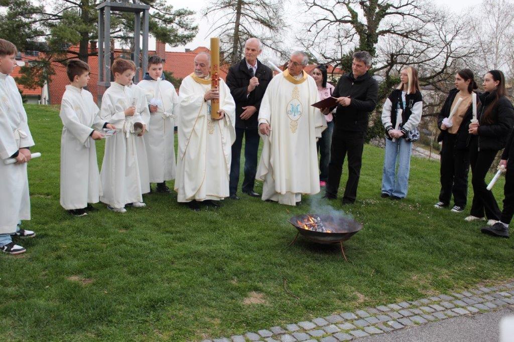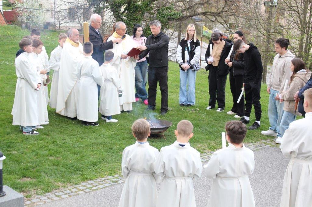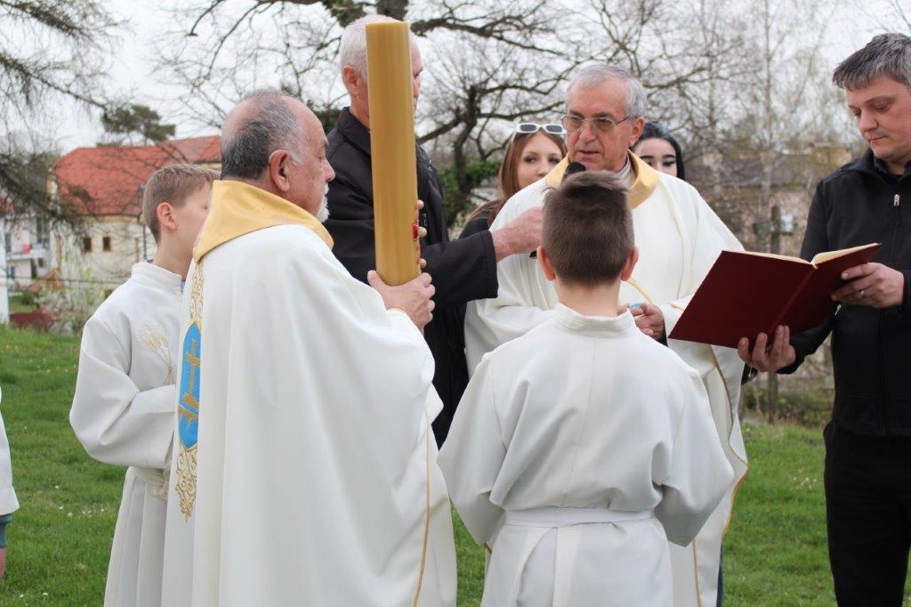 Vstajenjsko bogoslužje na današnjo veliko noč pa je steklo pred sveto mašo, ki se je pričela ob 7,30. uri in to s procesijo pod vznožjem griča na katerem stoji cerkev svetega Petra. (F.K.)