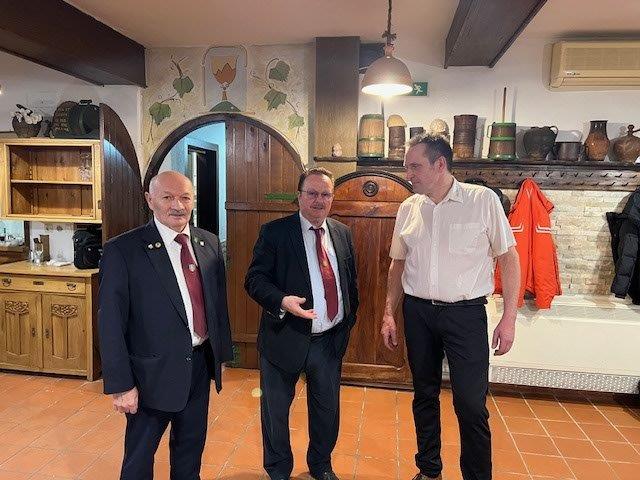 Velika večina izmed 23 članic in članov Združenja Slovenskega reda vitezov vina (ZSRVV), omizje za Pomurje, ki sodi med najbolj dejavna izmed vseh osmih omizij v Sloveniji, so se v okviru svojega letnega plana dela, prvič v letu 2026, sestali na Turistični kmetiji Frank – Ozmec (Slamnjak 33, Ljutomer). Na bolj kot ne družabni dogodek, saj so zraven bile tudi soproge oz. partnerke, sta jih na „domačijo“ bodočega viteškega prijatelja Vilija Ozmeca (trenutno je vinski vitez pripravnik, op.p.), povabila tajnica in konzul Pomurskega omizja Simona Potočnik in Zlatko Borak. V prijetnem, domačem okolju, so vitezi in vitezinje najprej opravili obvezni sestanek, kjer so med drugim povedali, da so v letu 2026 v celoti realizirali vse načrtovano, ob tem so se dogovorili o tem kaj bodo delali v prihodnjih mesecih, kjer je v ospredju promocija vinske kapljice, izobraževanje vinogradnikov, svetovanje o kulturi pitja vina ipd.