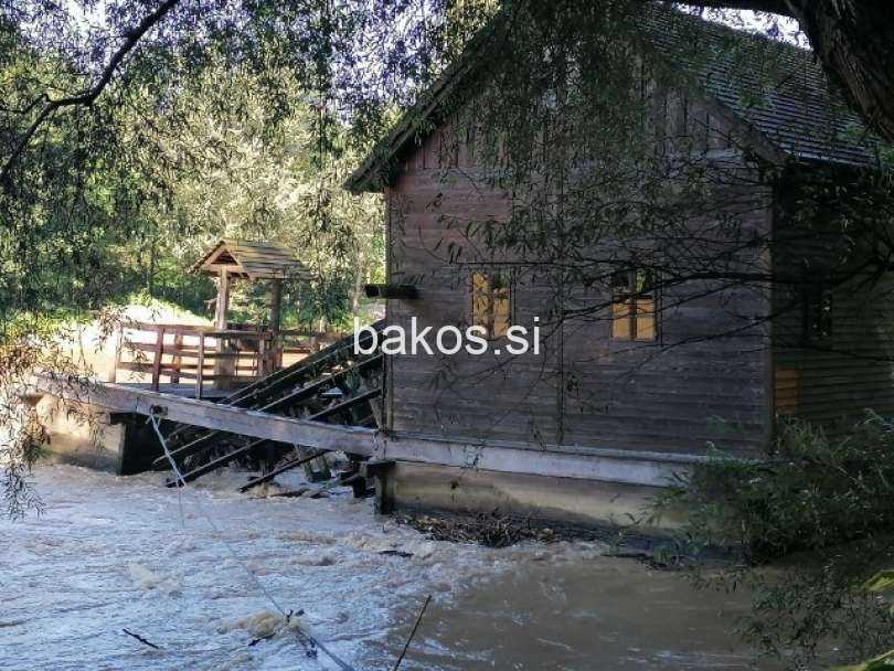 Zaradi močnega pretoka so v reki plavali tudi leseni hlodi in podrta drevesa, predvidoma zaradi zagozdenja vej pod mlinskim kolesom pa se je to dvignilo in pretrgalo.