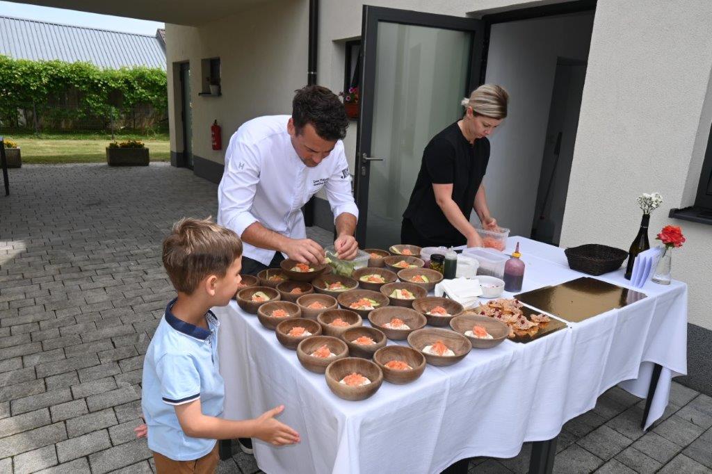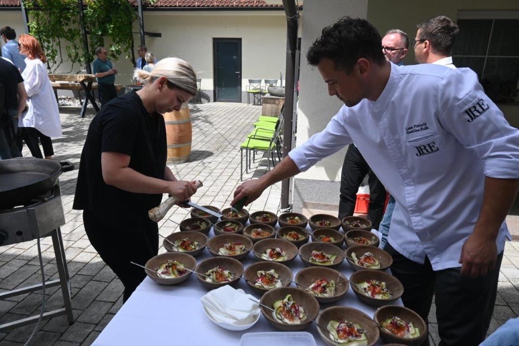 Ob tokratnem prijetnem dogodku, kjer ni manjkalo vrhunskih penečih se in tihih vin iz bližnje kleti, in kjer je za glasbene vložke skrbel Renato Ribič, je za kulinariko skrbela še ena znana pomurska družina – Gostilna Rajh iz Bakovcev. Kar štiri generacije (Ignac, Tanja, Damir, Leon, Valentina, Niko) so bile na prizorišču, kjer so sproti skrbeli za vrhunske jedi. Najprej so ponudili Naš pozdrav: Krema jajčevcev z meto, Račkina pašteta na ajdovem čipsu, Dimljena ajdova kaša, losos in čebula, Rajhov „esihgflajš“. Glavne jedi – po degustaciji: Počasi pečena svinjska potrebušina „Tačke“, Čufti v paradižnikovi omaki, Mladi krompir in ožgani korenček, Hladne mlečne kumarice, Ješprenova solata. Sladica: Domači češnjev zavitek.