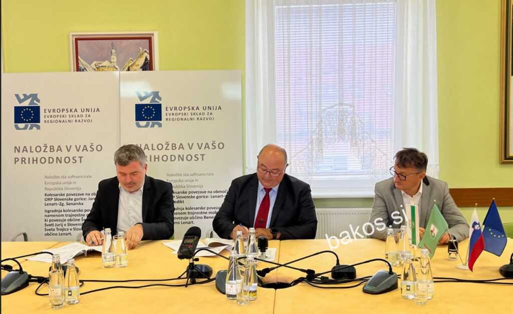 Danes so v Lenartu podpisali dve gradbeni pogodbi za gradnjo kolesarskih povezav na območju ORP Slovenske gorice.