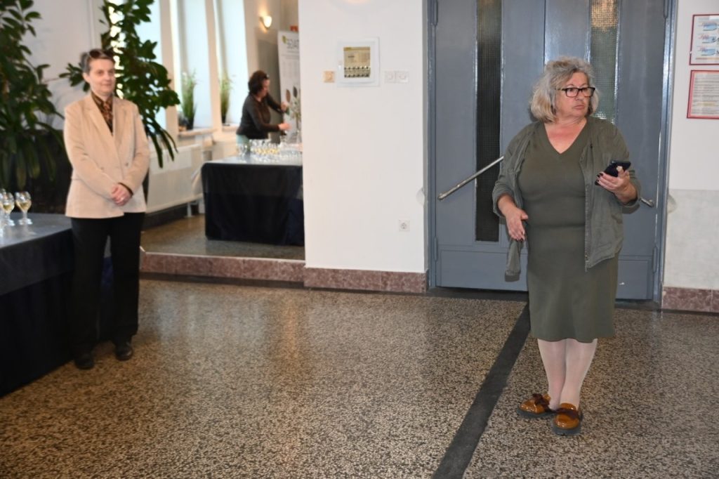O likovnem ustvarjanju avtorice Karmen Jančar, je spregovorila akademska slikarka Aleksandra Fekonja, ki se je vmes tudi strokovno pogovarjala z avtorico. „Umetniška praksa Karmen Jančar se razvija zunaj institucionalnih okvirjev in arhivskih logik, v prostoru, kjer ustvarjanje ni ločeno od vsakdanjega življenja, temveč z njim organsko prepleteno. Njeno delo ne temelji na linearni umetniški biografiji, temveč na kontinuiranem, pogosto fragmentarnem ustvarjanju, ki se odvija skozi desetletja – med slikarskim platnom, najdenimi predmeti in osebnimi zbirkami. V lokalnem prostoru Gornje Radgone je pristna kot aktivna članica likovne skupnosti in udeleženka številnih skupinskih razstav, vključno z regijskimi tematskimi projekti in likovnimi kolonijami. Njena prisotnost v teh kontekstih ni zgolj participativna, temveč vzpostavlja specifičen avtorski glas, ki izstopa prav zaradi svoje neukalupljenosti. Čeprav njena razstavna zgodovina ostaja delno neformalna in nepopolno dokumentirana, je razvidno, da se razteza preko lokalnega prostora, v Avstrijo, Italijo in širši srednjeevropski prostor, tudi v okviru esperantskih kulturnih povezav. Ta geografska razpršenost kaže na umetniško delo, ki presega meje, a hkrati ostaja trdno zasidrana v lokalnem okolju,“ je avtorico Karmen Jančar ocenila akademska umetnica Aleksandra Fekonja.