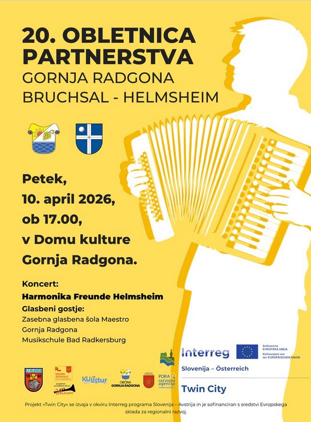 Ta petek, 10.04.2026, s pričetkom ob 17:00 uri se v Kulturnem domu Gornja Radgona obeta izjemna glasbena prireditev, pod naslovom: 20 let partnerstva – praznujmo skupaj!