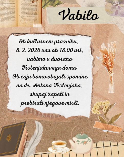 V nedeljo 8. februarja na Slovenski kulturni praznik, vabi župnija Gornja Radgona, ob 18.00 uri v dvornano Trstenjakovega doma še na zadnje dejanje v sklopu dogodkov Trstenjakovih dnevov 2026. Tokrat se nam obeta Akademija ob Trstenjakovem letu. Ob čajanki, bo tekla beseda spomina na dr. Antona Trstenjaka. Ob tem pa se bodo prebirale njegove modre misli in besede.
