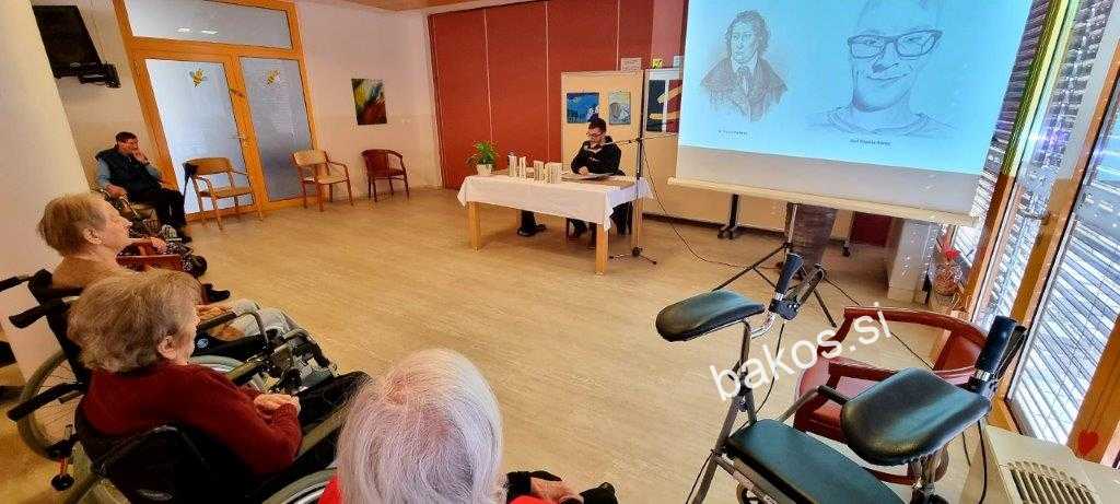 Prisotne je navdušil z izborom svojih pesmi in kratkih zgodb, ki jih je umetelno prepletel s Prešernovimi deli. Podaril nam je tudi nekaj izvodov vsake knjige za domsko knjižnico. Dogodek, ki se je odvijal pred množico stanovalcev DSO Gornja Radgona so popestrili z glasbeno kuliso za katero je poskrbel domski delovni terapevt Matjaž Zupanc.