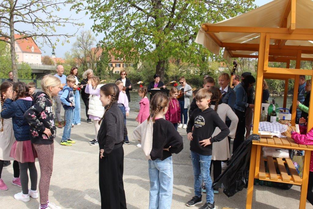 Včeraj, na belo nedeljo, okoli poldneva, je v mestu penine in sejmov, na ploščadi pred mostom čez reko Muro v Gornji Radgoni bilo kar razigrano in veselo. Kulturno društvo Peter Dajnko iz Črešnjevcev je namreč pripravilo prvo letošnjo javno vajo tamburaške skupine, ki je v lanskem leru obeležila kar 115 let obstoja in uspešnega delovanja. Tamburaške melodije, ki so bile slišane tudi na levem bregu reke Mure, v sosednjem Bad Radkersburgu, je privabilo številne ljubitelje nežne tamburaške glasbe, z levega in desnega brega reke. Na tokratno prvo javno vajo so črešnjevski tamburaši v goste povabili tudi Otroško folklorno skupino OFS Apače, kateri so zaplesali folklorne plese ob spremljavi tamburašev iz Črešnjevcev.
